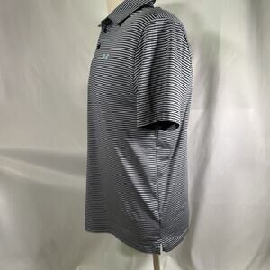 Under Armour Loose Heat Gear Men Gray Striped Short Sleeve Polo Shirt Sz L