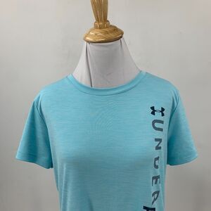 Under Armour Loose Tee Womens M Medium Blue Heatgear Short Sleeve Logo Shirt