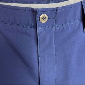 Soft Stretch Woven Total Comfort Fabric with a Flat Front. Four Pockets. Sweat Wicking Quick Dry. Navy Blue