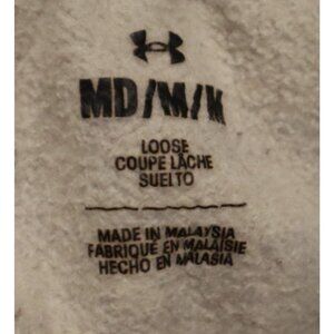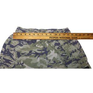 Under Armour Project Rock Freedom camo joggers in men’s size medium with a loose fit, featuring mixed tiger-stripe and digital camo print for a bold tactical look. Soft fleece interior, elastic drawstring waist, and cuffed ankles make these perfect for training, lounging, or streetwear outfits with a military-core aesthetic.