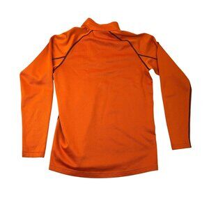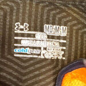 Crafted with precision, this Under Armour ColdGear pullover offers an optimal blend of warmth and comfort. The vibrant orange hue adds a striking touch, while the fitted design ensures a streamlined silhouette. Its moisture-wicking fabric keeps you dry during activities, and the 1/4 zip provides adjustable ventilation. A reliable choice for active or casual wear.