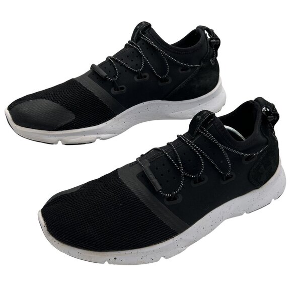 Under Armour Mens 10 Black White Lightweight Athletic Running Shoes Mesh Upper Speckled Sole Athleisure Jogging Pickleball