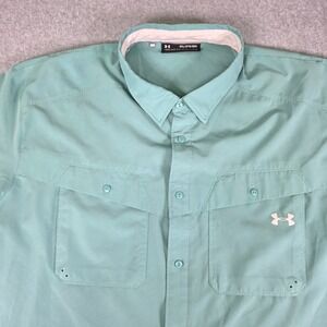 Under Armour Men's 3XL HeatGear Fishing Shirt Short Sleeve Button Down Aqua