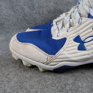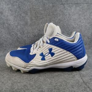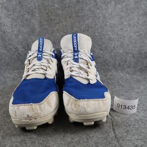 Used Under Armour Mens 9.5 Baseball Cleats Leadoff Sport Shoe Athletic Blue White Lace Up