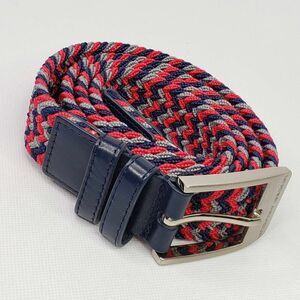 Under Armour Mens Belt Red Navy Woven Stretch Leather Tab XL OS Adjustable Golf
