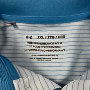 Under Armour men’s big and tall, striped performance polo shirt, size 2XL. Excellent condition, like new, no flaws.