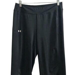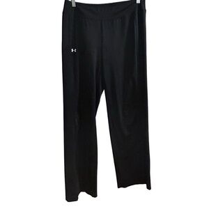 Keywords: Under Armour, men's sweatpants, black pants, athletic fit, medium size, elastic waistband, breathable fabric, stretchy pants, casual wear, pre-owned, excellent condition, polyester, elastane, athletic pants, straight leg.
