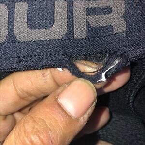 Under Armour men's black joggers in size large. Features ColdGear technology, a loose fit, and an adjustable drawstring waist. Ideal for sportswear and casual wear. Note: Small snag at waist on the inside, see photos.