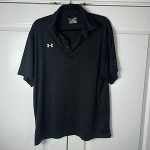 Under Armour Mens Black Polo Shirt Solid Loose Collared Top Short Sleeve Size XL
