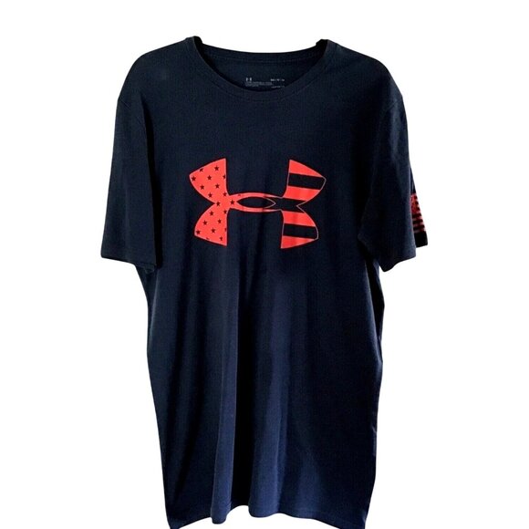 Under Armour Mens Black & Red Graphic T-Shirt Medium Cotton Size M