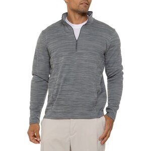 The Under Armour Men's Black Stripe Storm Sweater Fleece Golf 1/4 zip is a stylish and practical pullover designed for outdoor activities, like golf. The sweater features a mock neck with a zip closure, long sleeves, and a gray striped pattern, making it suitable for winter, fall, and spring seasons. Made with fleece fabric, it provides warmth and comfort while being machine washable for easy care. The Under Armour Storm product line ensures quality and performance, perfect for the avid golfer looking for a functional and fashionable garment.