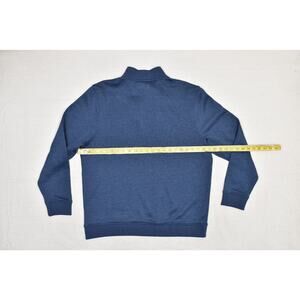 Stay comfortable and versatile with this Under Armour men's 1/4 zip pullover sweater. This heathered blue pullover features a classic stand-up collar and a quarter-zip closure, allowing for adjustable ventilation and easy layering. Designed with a 'Loose' fit, it offers ample room for movement, making it suitable for active wear or casual comfort. The subtle heathered texture adds visual interest, while the embroidered Under Armour logo on the chest signifies athletic quality. This pullover is a men's size XL/TG/EG. It is in excellent used condition with no visible signs of wear, stains, or tears. The armpit to armpit measurement is approximately 25.5 inches, and the length from the shoulder to the hem is about 29 inches. Perfect for golf, cooler weather workouts, or everyday casual wear. Please refer to all images for detailed condition and precise measurements.