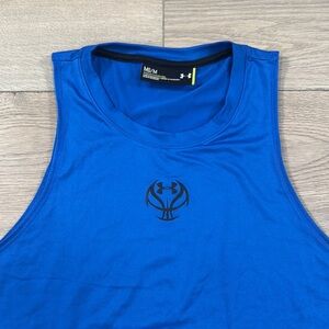 Under Armour Men's Blue and Black Tank Top with Basketball Logo