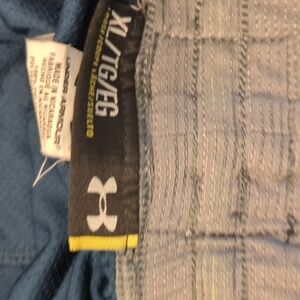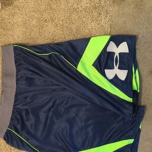 Dynamic athletic shorts by Under Armour. Blue with neon yellow accents. Ideal for sports and workouts. Good pre-owned condition.
