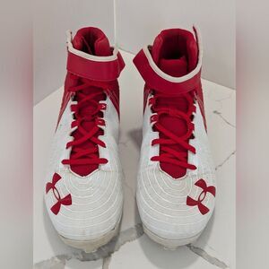Under Armour Men's Bryce Harper 4 Mid Rm Baseball Shoe cleats red white size 13
