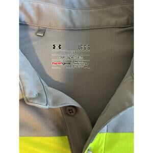 Under Armour Men's Golf Polo Size Large Gray Neon Stripe Heatgear