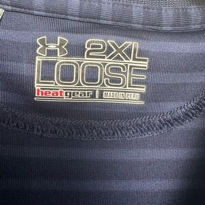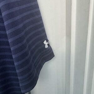 Under Armour Men's Golf Polo Torrey Pines 2XL Loose Blue Stiped Heat Gear Preppy