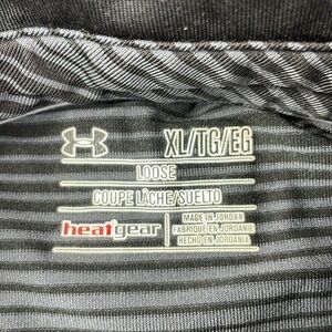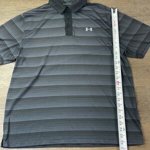 Under Armour Mens HeatGear Black Grey Striped Short Sleeve Polo, Cold Black, XL. In excellent used condition. See pictures for measurements and fabric content.