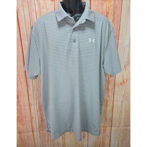 Under Armour Mens HeatGear Polo Shirt 2XL Gray & White Striped Loose Fit