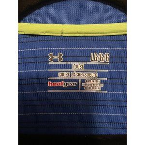 Under Armour Men’s Heatgear Loose Fit Golf Polo Shirt Blue White Striped Size L. Great pre-owned condition! See pics for details. Fast shipping!