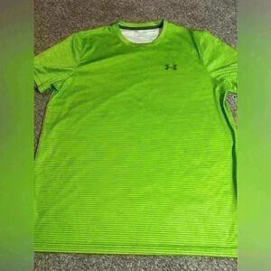 Under Armor Men’s Heatgear Loose Fit Green Stripped Short Sleeve Shirt Sz Large