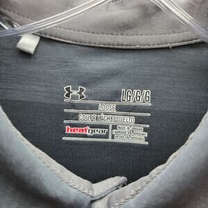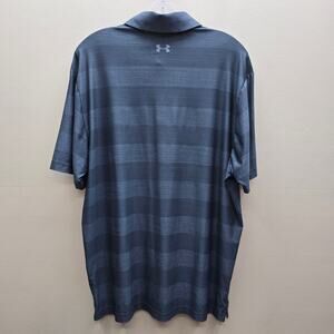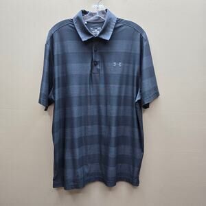 Under Armour Men’s Heatgear Polo Shirt Loose Striped Sports Logo Golf Gray Large