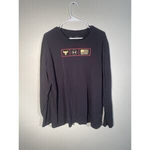 Under Armour Mens L Navy Blue Long Sleeve Project Rock Brahma Bull USA Shirt. Minor piling. See photos for overall condition and measurements.