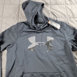 Stylish and comfortable Under Armour black hoodie with a large logo graphic print, perfect for casual and sportswear. Long sleeves provide warmth and coverage.