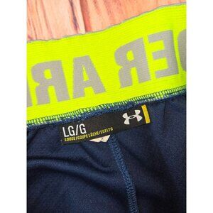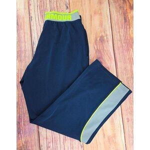 Elevate your workout with these Under Armour athletic pants. Designed for comfort and style, the loose fit allows ease of movement. The bold navy and neon green combination ensures you'll stand out, whether at the gym or on a run. Enjoy the perfect blend of fashion and function.