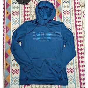 Under Armour Men's Loose Medium Blue Teal Cold Gear Hoodie Pullover Sweatshirt