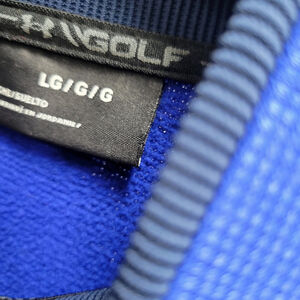 Under Armour Men's Loose Quarter-Zip Long-Sleeves Sweatshirt in size Large is a stylish and comfortable activewear piece perfect for winter, fall, and spring seasons. Made with polyester material, this solid blue sweatshirt features a high neckline with a 1/4 zip closure and long sleeves for added warmth. The regular fit and logo accents make it a versatile choice for gym training, walking, or golf, providing both functionality and style for the modern man. Easy to care for with machine washable instructions, this sweatshirt is a must-have addition to any wardrobe.