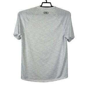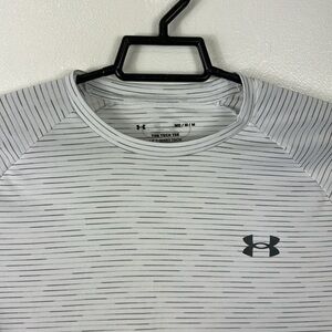 Under Armour Men's M The Tech Tee White Gray Stripe Performance Wear EUC