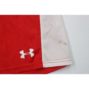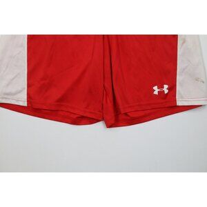 Under Armour Mens Medium Loose Color Block Gym Training Basketball Shorts Red