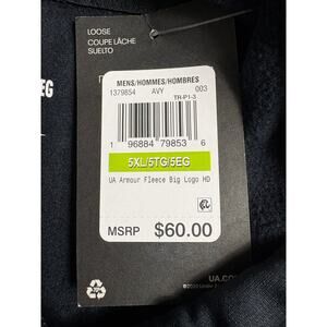 Under Armour Men's Navy Fleece Big Logo Hoodie Pullover Kangaroo Pocket Size 5XL