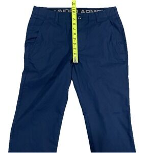 These Under Armour men's pants in size 34x32 are a versatile and comfortable option for various occasions. The pants feature a solid blue color with a polyester and spandex blend material, making them lightweight and breathable. The elastic waist and straight leg fit provide a comfortable and stretchy feel, while the zip/button closure adds convenience. With pockets, easy care fabric, and a modern athleisure style, these pants are ideal for travel, activewear, casual outings, workwear, and business settings during the summer and spring seasons. Perfect for walking and golfing activities, these pants combine style with functionality for the modern man.P59