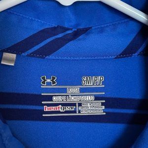 Under Armour - Mens Polo - Bright Blue Striped - Size Small - Heat Gear