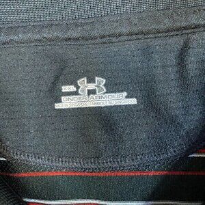 Under Armour Mens Polo Shirt 2XL Black Red Striped Performance Heather