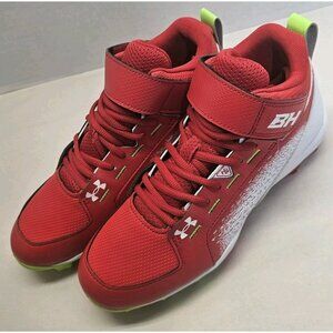 Under Armour Men's Red/ White/Hyper Green Harper 6 Mid Baseball Cleats Sz 6.5
