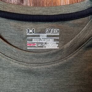 Under Armour Men’s size small heatgear loose fit green athletic shirt. In excellent condition from a smoke free home.