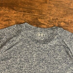 Under Armour, Men’s Short Sleeve Workout Shirt, Sz.3XL Tall. Perfect for a workout or just an afternoon running errands. Great quality. Made by a well-known, solid brand. Good condition. No holes, stains or damage. An excellent addition on to any closet!