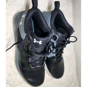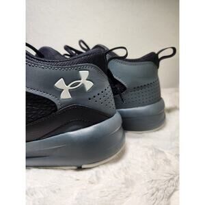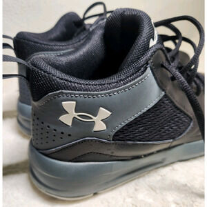 The product is a pair of Under Armour men's high top athletic sneakers in size 10. These shoes are a stylish combination of black and gray colors, making them versatile for various athletic outfits. The high top design offers added ankle support and stability, making them ideal for activities such as sports or fitness training. The sneakers are designed with the signature Under Armour brand, ensuring quality and performance for the user.