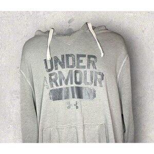Stay warm and stylish with this Under Armour Loose Fit Rough Hem Cold Gear Gray Hoodie in size 2XL. Made with a polyester and cotton blend, this hoodie features a graphic print, long sleeves, and a pullover closure. The knit fabric type and relaxed fit make it perfect for gym and training, walking, cross training, CrossFit, running and jogging, and outdoor activities.