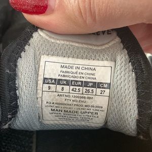 Men’s sneakers that are mildly worn that still have life in them. Man made upper synthetic and textile. The outsole is made of rubber. Tread is in great shape.