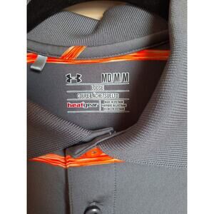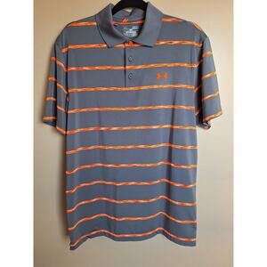 Under Armour Mens Sz Medium Gray/Orange Striped Loose Fit Golf Polo Shirt. Condition is Pre-owned. Shipped with USPS Ground Advantage.