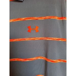 Under Armour Mens Sz Medium Gray/Orange Striped Loose Fit Golf Polo Shirt