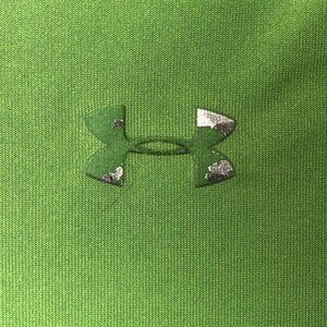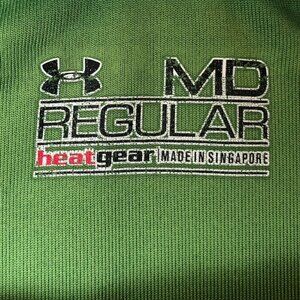 This Under Armour HeatGear shirt provides ultimate comfort during physical activities. Its lightweight polyester fabric wicks away moisture, ensuring you stay dry. Designed for medium regular fit, this vibrant green tee is ideal for sports or casual wear, offering both style and durability. Made in Singapore with precision craftsmanship.
