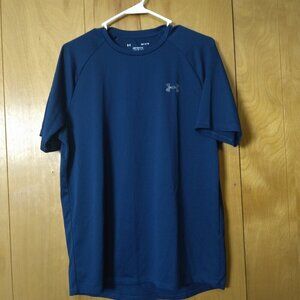 Men's Medium Under Armour "The Tech Tee" is blue and is a pullover. It is missing the material and wash instruction tag. It has logo on the front and back.