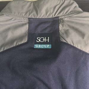 Elevate your look with this Under Armour jacket. Features a stylish navy body with gray accents. Ideal for lightweight comfort. Perfect for golf or everyday wear. It does have a company logo on back center.