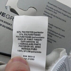 • Palm is 50% polyester 50% silcone / Ring Finger 86% nylon 14% elastane / Back of Thumb 63% polyester 37% polyurethane