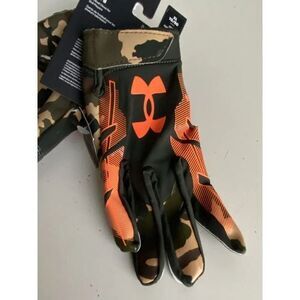 Under Armour Men's UA F8 Novelty Football Gloves 1370840-310 Orange Camo Sz L